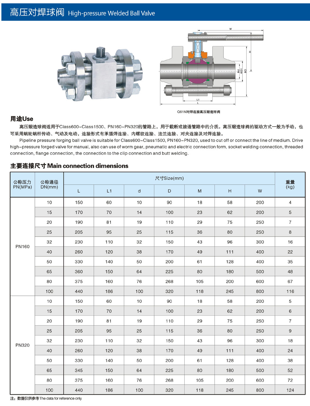 高压对焊球阀Q61F/N-160、320